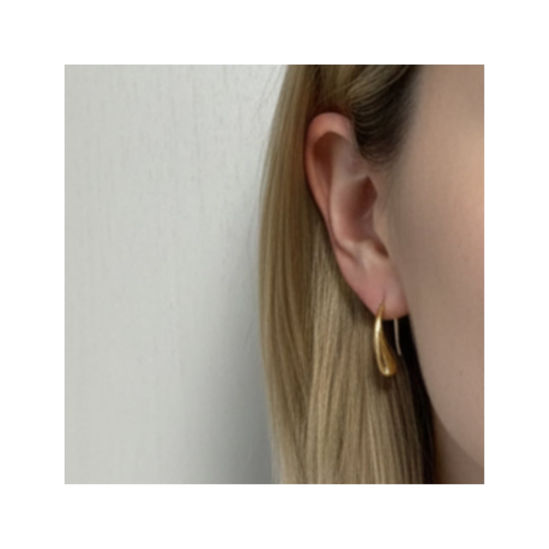 水滴のようなフォルムが耳元でさりげなく揺れ、シンプルながら印象的なアクセントに。