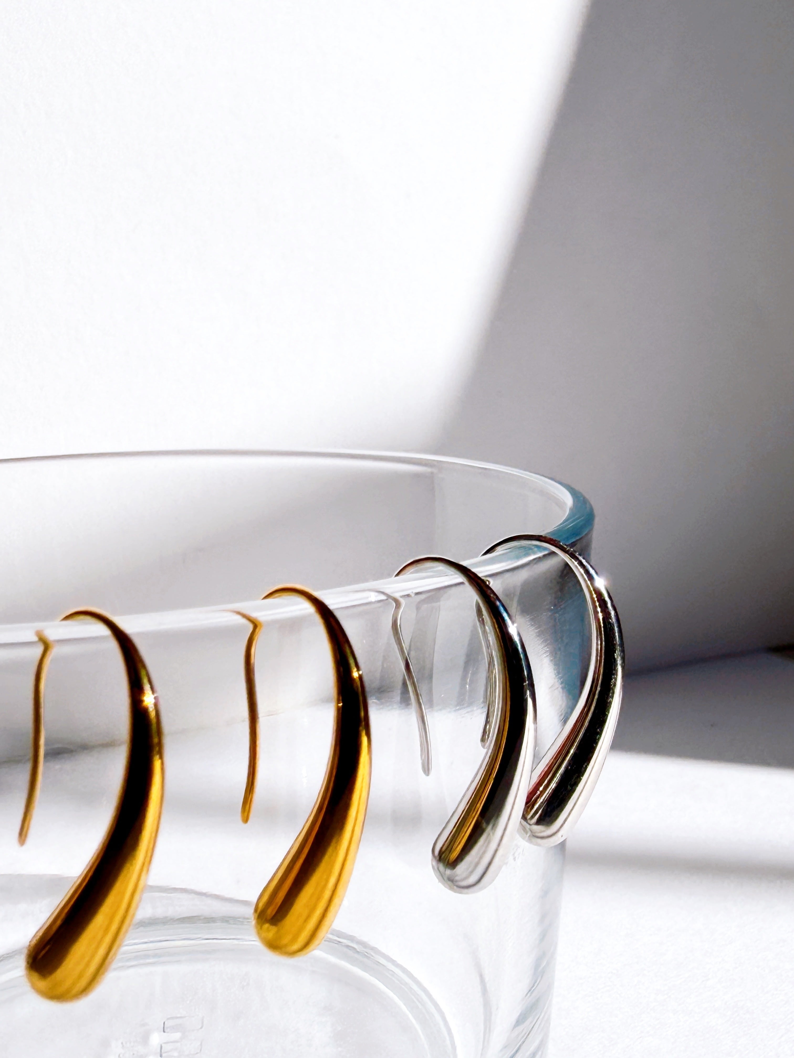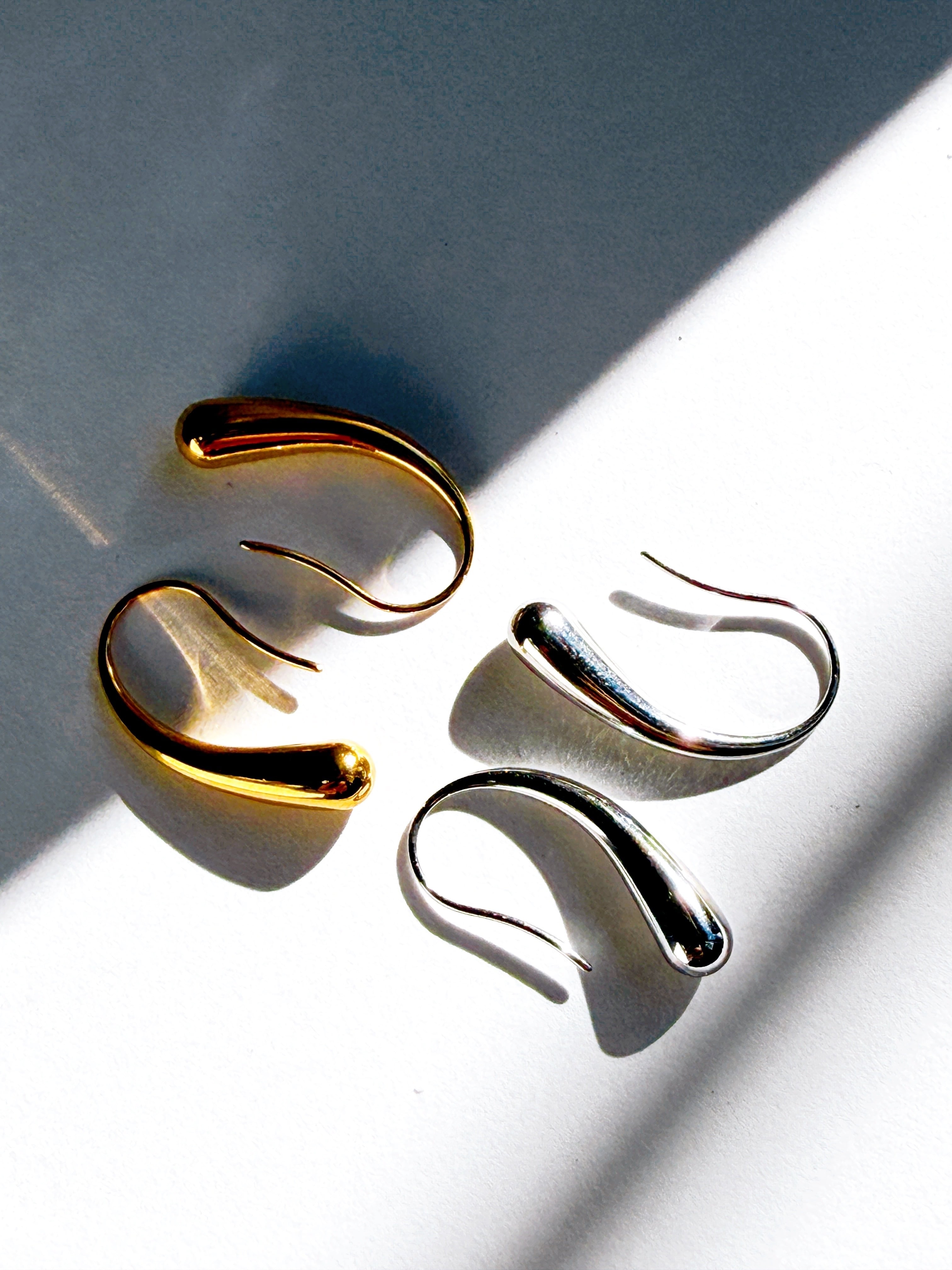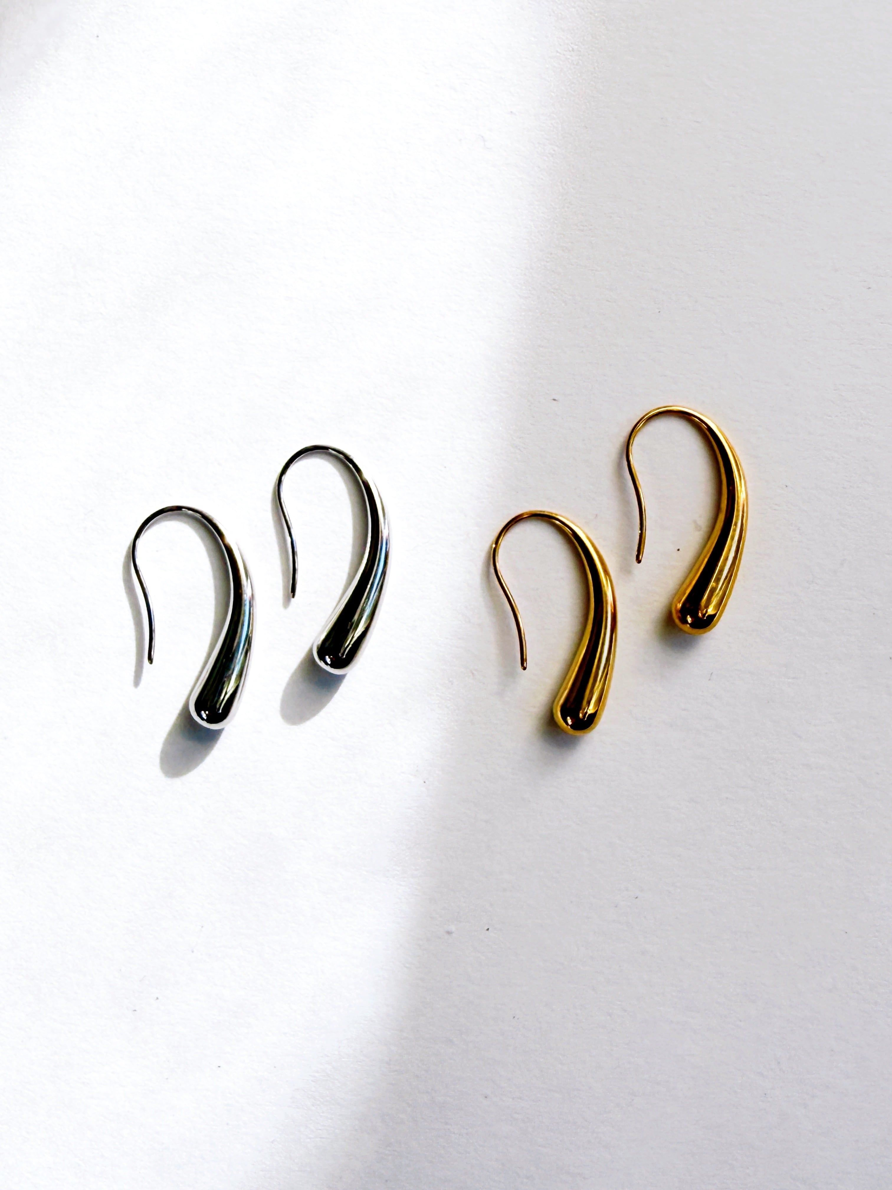 なめらかな曲線が美しい、ドロップデザインのフックピアス。
